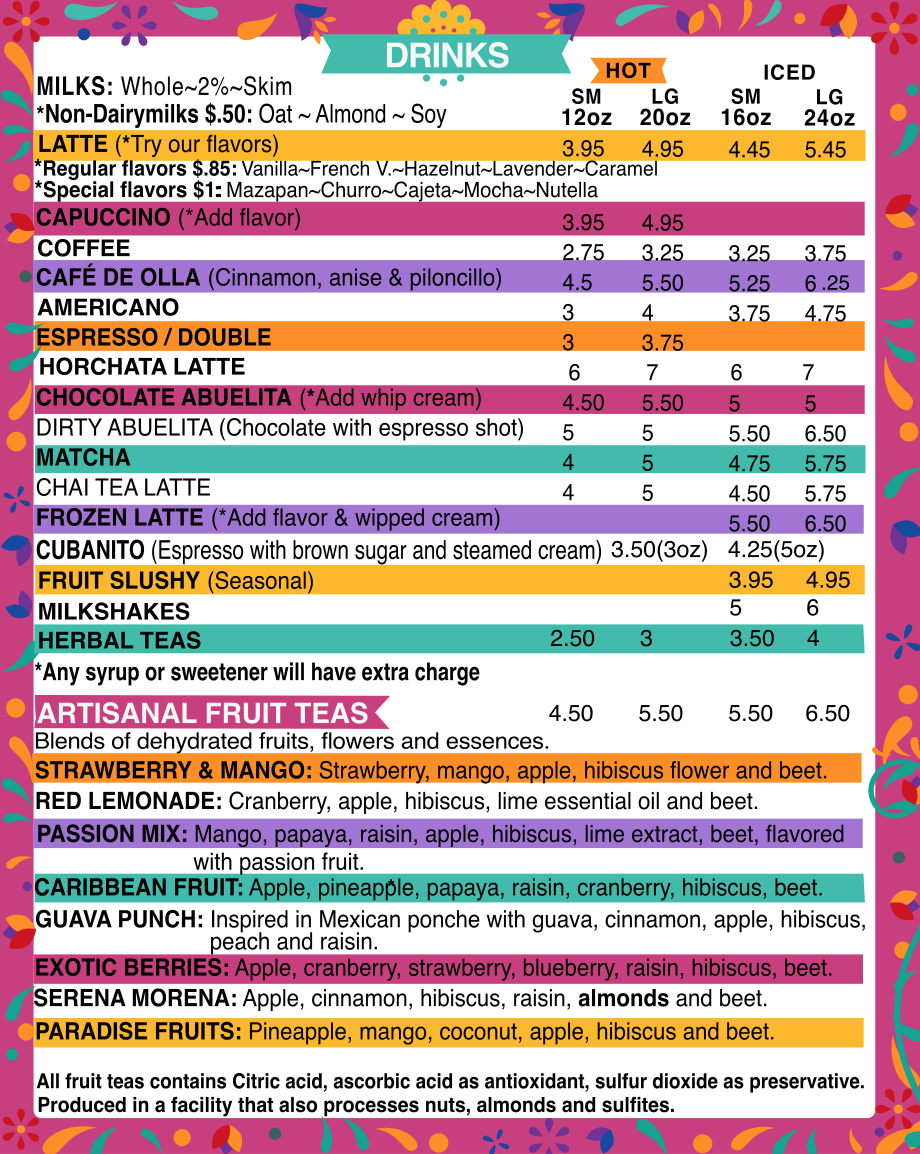 Menu Opening Hours Monday7:00am-5:00pm Tuesday7:00am-5:00pm Wednesday7:00am-5:00pm Thursday7:00am-5:00pm Friday7:00am-5:00pm Saturday8:00am-5:00pm Sunday8:00am-4:00pm